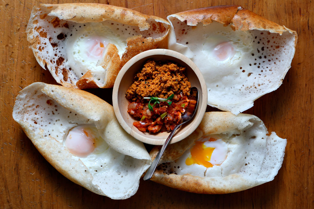 There are so many good (and filling) things to eat at Hopper Hut that it’s disrespectful to come here without a crew. Start with hoppers, a crepe-like batter cooked into a bowl shape, eaten with chili/coconut chutneys and curries. From there, get a bowl of mild mutton curry and blast furnace-spicy crab curry, with roti for dipping. Then move on to kothu roti, a griddle-fried hash of roti, onion, chili, egg and meat. You can order most of the dishes with a choice of mutton, beef, chicken, squid or shrimp. For the lamprais (bindle-sized packages of rice, vegetables, curry, egg and dried fish wrapped in banana leaf), whatever meat you choose will be dwarfed by the remaining ingredients.