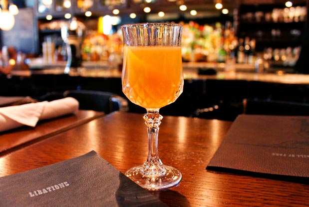 The cocktail menu is devoted to prohibition-era beverages, including the tobacco Manhattan ($18) and the barrel-aged Negroni ($14). We, however, opted for the Streetcar ($15). A nod to the Sidecar, this cocktail features Calvados apple brandy and Amaro Montenegro along with lemon juice, house-made orange-spiced simple syrup and a dash of lemon oil. Bartender Elan Marks serves each cocktail in antique, crystal-cut glassware, transporting the imbiber into a rollicking past.
