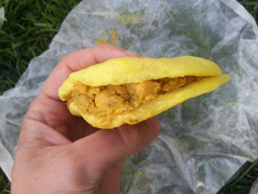 Our first round through the market yielded seven Trini doubles, three bags of banana bread and a carton of slightly overripe Ontario blue grapes, which were delicious. We brought our dinner to the perpetually strange Bellevue Square Park on Augusta, where curious denizens crowded around within minutes. Douma had no problem sharing the food. We sat down, the whole scraggly hodgepodge of us, and ate for free.