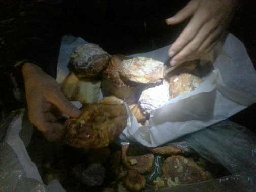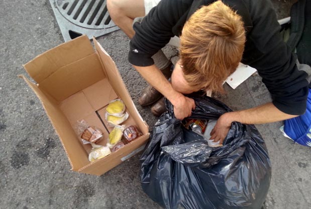 This past weekend, I had a nighttime picnic with two new friends. We gorged on some of the tastiest baked goods in the city, sampling all manners of delicately layered pastries and cream-filled desserts. All of it was fresh. Our “mmms” were loud and frequent. We could have spent well over $100 on that stuff, but we spent nothing, because it all came from the garbage.
