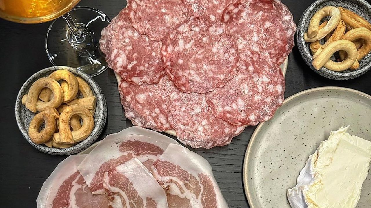 Patrons can order from a menu featuring a complementary selection of sharing plates and snacks like charcuterie, cheese, in-house made dips, snacks, sandwiches, challah, a beautiful cured salmon plate, salads, as well as a few vegetarian options. They even offer grilled cheese and crudité for the kids.