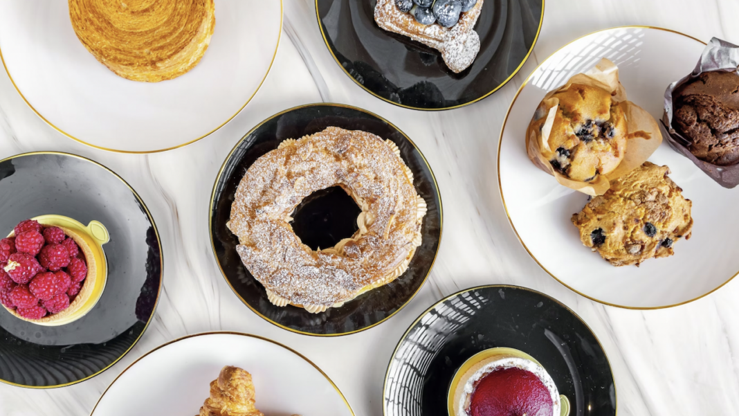 On the menu, you’ll find classic pastries, like eclairs made with choux pastry, madeleines, croissants, macarons, quiche and Paris-Brest. Other favourites include a selection of muffins, cookies and tarts, including the best-selling almond raspberry tart, made with fresh raspberries, raspberry mousse, almond cream and raspberry purée and topped with an edible golden chocolate