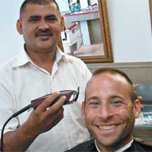 “We’re sending money home,but not through the government because we can’t trust the people in charge,” he says, and when another customer enters, someone, presumably, who knows the difference between Pakistan and Haiti, Ali steps aside to give the other man his haircut. His 25-year-old son in a UFC cap cuts my hair.