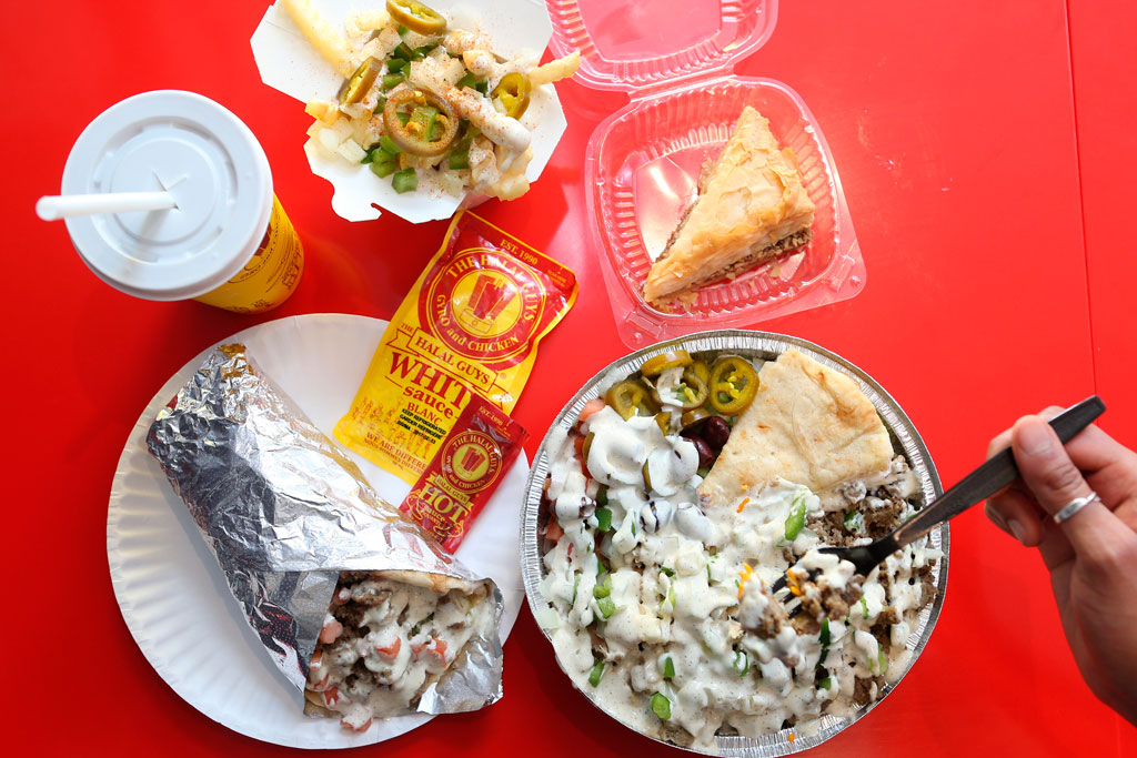 When three dudes from Egypt arrived in the U. S. A. back in 1990, they noticed something was up. Mohamed Abouelenein, Ahmed Elsaka and Abdelbaset Elsayed opened a hot dog cart at West 53rd Street and 6th Avenue, and found that Muslim cabbies, who made up much of their customer base, weren’t satisfied when it came to halal food options. A trio of great minds thought alike and Manhattan’s original halal food cart concept was born.