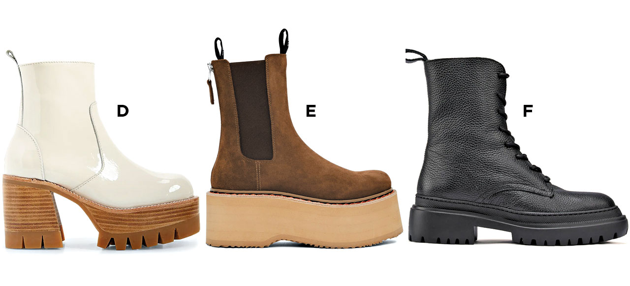 The season’s hottest chunky monkeys. Platform boots so thick, you want to eat them with a spoon.