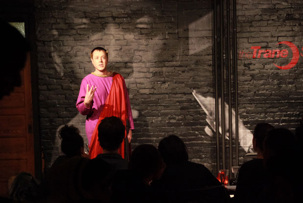 When Flashpoint’s Olunike Adeliyi took to the stage during Toronto’s first monologue slam last Sunday night at Trane Studio, she was covered in fake blood, had a cigarette drooping from her mouth and wore a tight cocoon-fitting dress: she was a hardened working girl.