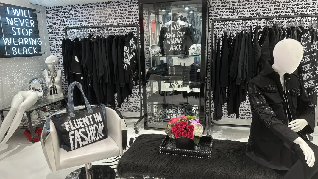 The brand’s collections are often cheeky and irreverent — such as the “I Will Never Stop Wearing Black” collection (fittingly filled with all-black items, some of which are emblazoned with that slogan) or the Designer Remix Denim collection, which manipulates jeans in creative ways to create everything from patchwork denim skirts to a dress embellished with bows made of multi-toned denim.