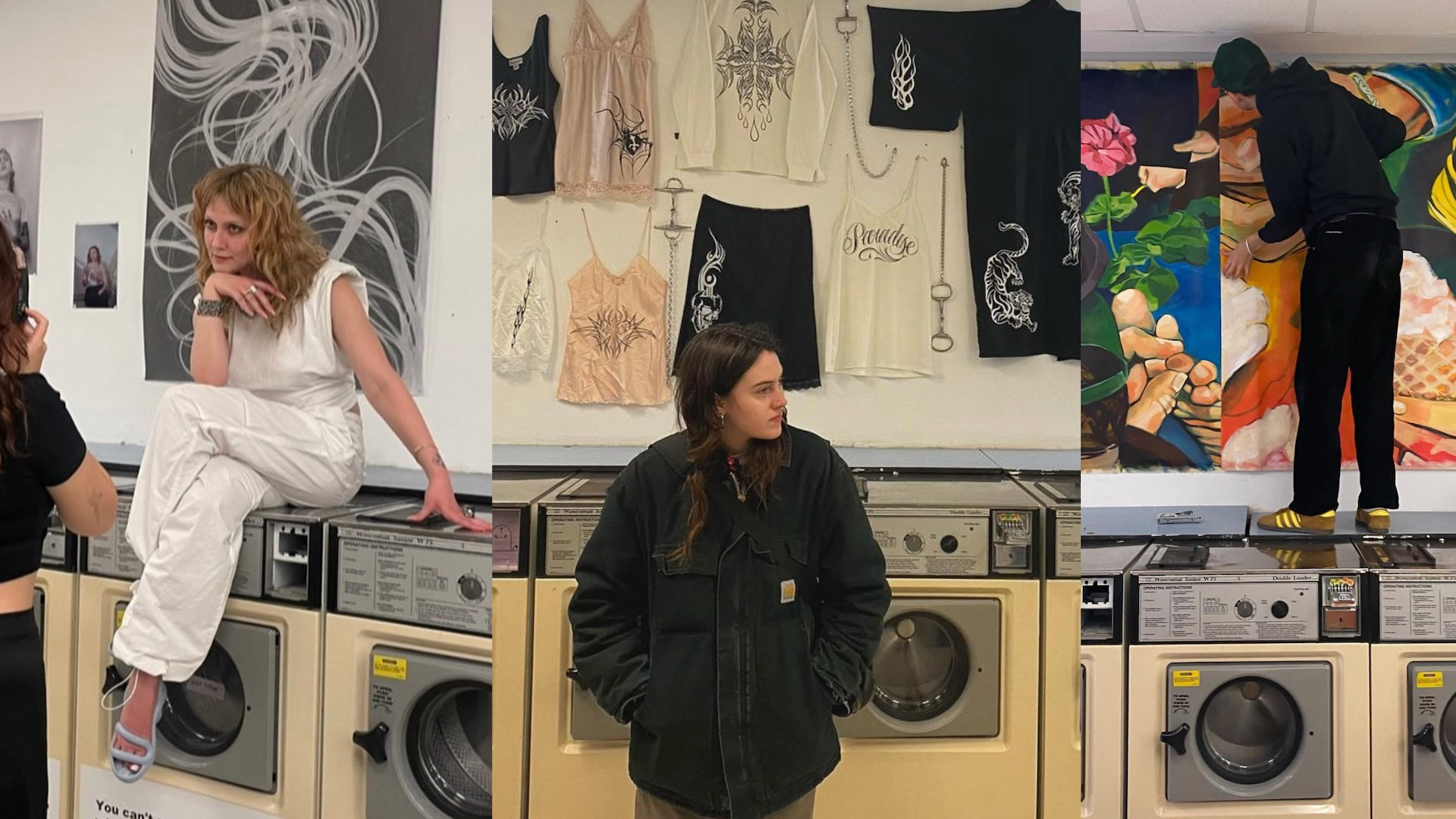 Simmons came up with the idea to formally structure the laundromat as a gallery during the maternity leave for her first child in 2022. She’d had a Tumblr account for a decade called She Said, and she knew she wanted to take on a physical project, so she created an Instagram page and started posting her favorite art photos.