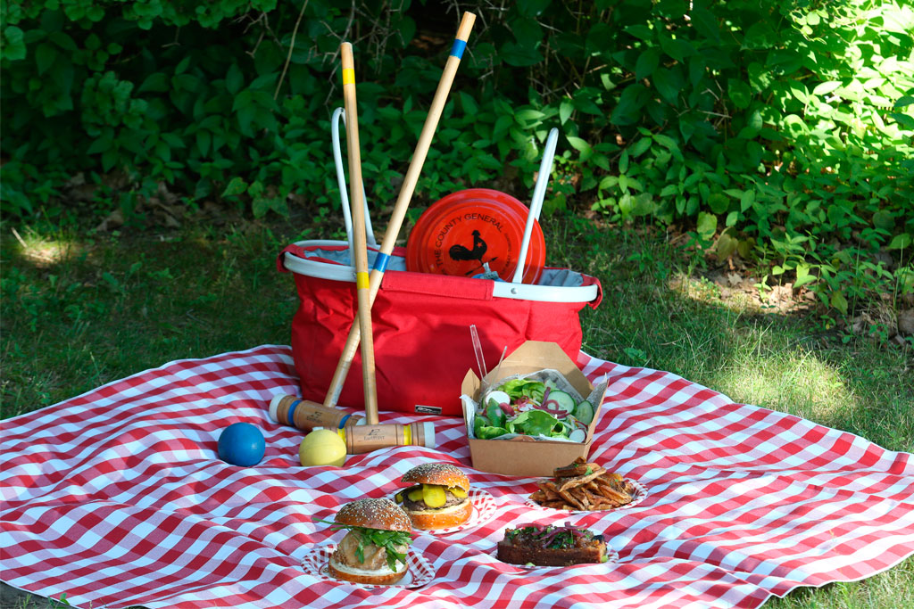 There’s also a checkered blanket and your choice of games (including bocce ball, croquet and football and Frisbee) to entertain you after your meal.