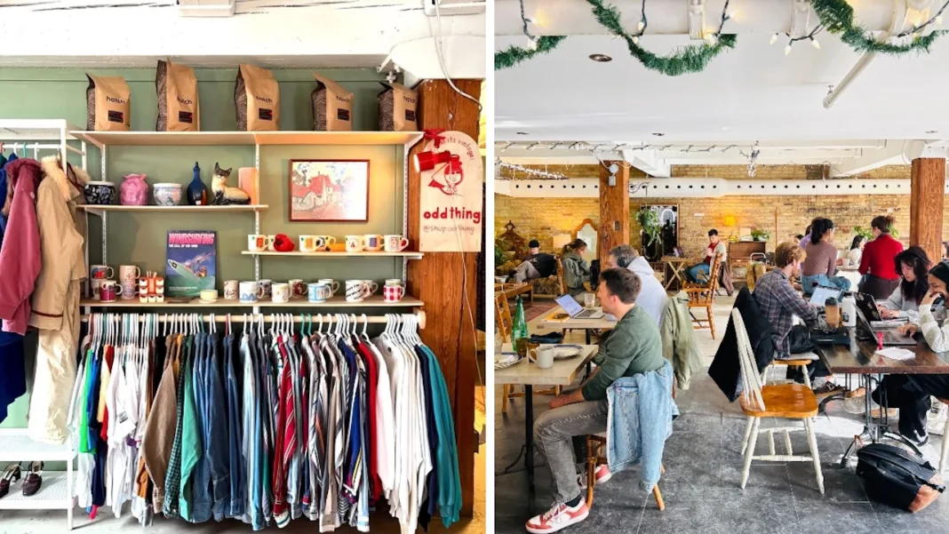 There’s a massive coffee shop on Dupont Street that houses artist studios and community events that include film viewings and collage nights. It’s called Typist, and it’s the brainchild of career typist Nicole Bhersafi. If the concept weren’t already welcoming enough, it’s now home to a new vintage shop, Odd Thing, operated by Ana Popova.