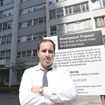 In what Coun. Josh Matlow calls, “simply the worst infill development I have seen in four years,” Compten Management Inc. is proposing to place five-storey condo additions on top of two 14-storey apartment buildings at 33 Holly St. and 44 Dunfield Ave.