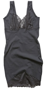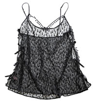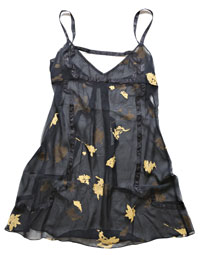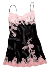 If you’re on a budget or reluctant to splurge, you might consider this négligée from Victoria’s Secret. This has some beautiful black lace detailing, and it also has a nice little styling feature with the little slit.”