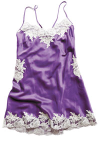 “This particular little négligée is beautiful because it’s silk. The colour, that royal purple, is just sensational. The pièce de résistance, as far as I’m concerned, is the laces up the back. Very sexy and very playful.”