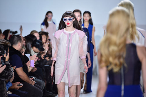 Next up, Ashtiani drew the likes of boutique owner Glenna Weddle and PR maven Christine Faulhaber to her spring collection. The up-and-coming designer showed a series of sporty, pastel-hued looks that played around with geometrical forms. The best pieces included refined takes on the sweatshirt — done through the interplay of shapes, fabrics and textures — and a sheer jacket with bubblegum pink patent leather accents.
