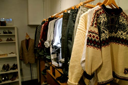 Meanwhile, in the women’s section, we found some woven leather belts ($5-$15), a cream lace shrug ($26) and a cummerbund dotted with beads and stones ($12). We loved both the coin earrings ($24) and the twisted asymmetrical vinyl earrings from jahyu ($54). With the store closing at 10 p.m. (8 p.m. on Sundays) — and the promise of parties to boot — it’s bound to become a late night haunt.