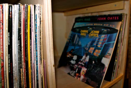 Vintage vinyl offerings include the likes of Herbie Hancock, some “hazy, ‘60s garage pop” from The Ventures and The Safaris, and, of course, Hall & Oates. Pricing ranges from about $10 to $27 (or more, for less common releases), with haggling possible, depending on what the purchase entails. Artwork displayed on the wall above the records is from local artist Jeff Blackburn, and features renditions of recording artists’ mug shots.