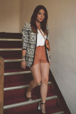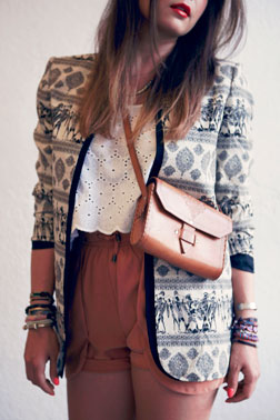 What I Wore: vintage blazer from The Salvation Army, white eyelet top by Leilanni, shorts by Gentle Fawn, shoes by Aldo, vintage leather mini-purse.